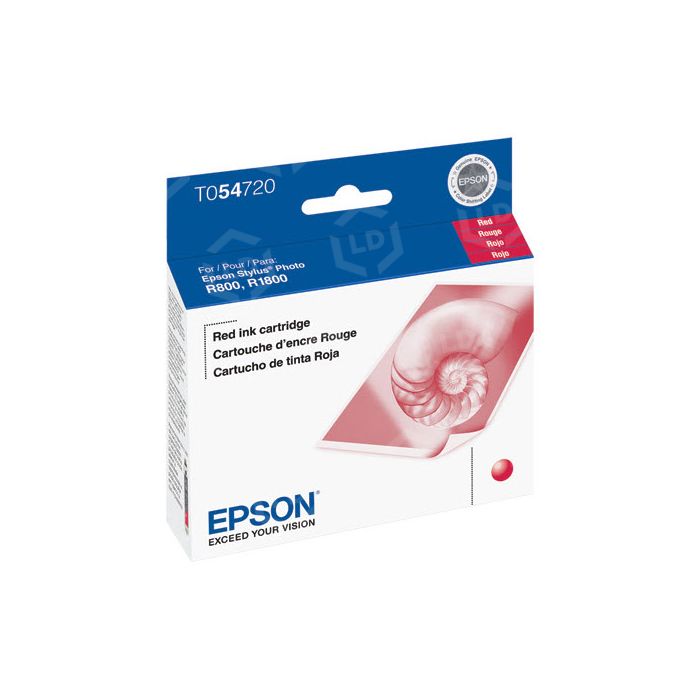 The OEM Epson T054720 (T0547) red inkjet cartridge is available to you right on our site. The Epson T054720 is a high resolution UltraChrome Hi-Gloss pigment cartridge. Buy your genuine T0547 ink cartridge and enjoy clear, accurate printouts from your Stylus Photo R1800 and R800 printers. 100% Satisfaction Guarantee.