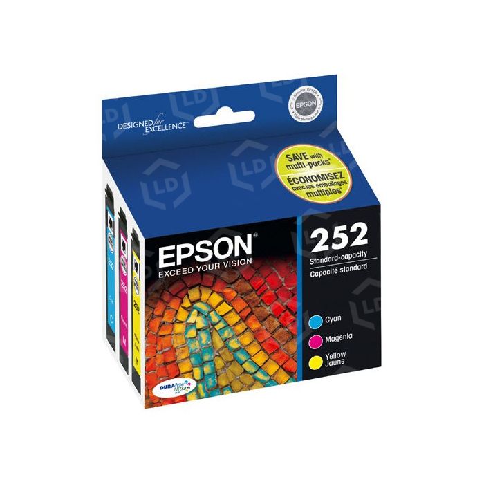 The genuine Epson T252520 set of 3 cyan / magenta / yellow inkjet cartridges is available to you right on our site. The genuine Epson T252520 set of 3 are all high resolution cartridges. Buy your genuine Epson T252520 set of 3 ink cartridges and enjoy clear, accurate printouts from your Epson printer. 100% Satisfaction Guarantee.
