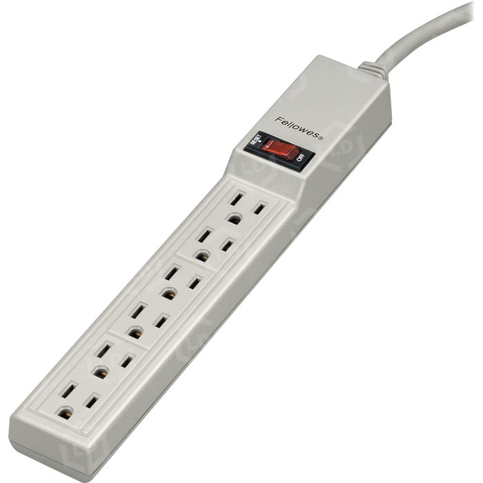 6-outlet power strip with 3-prong grounded plug and 3-prong outlets