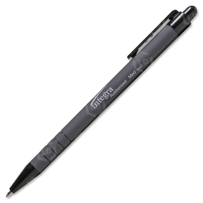 Integra Rubber Barrel Retractable Ballpoint Pen, Black - 12 Pack