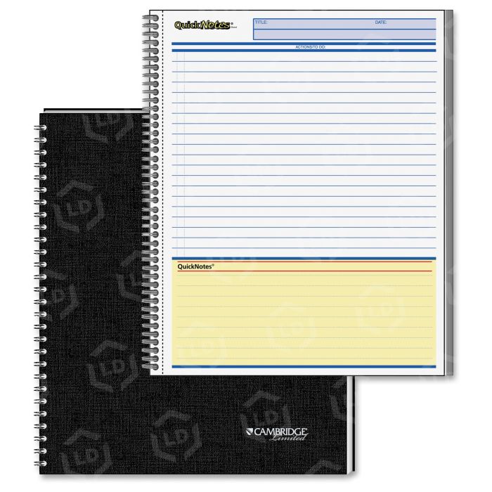 Mead QuickNotes One Subject Action Planner - 8.50" x 11" - 160 Page- Linen Cover - Black