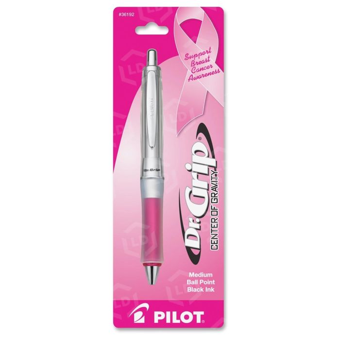Dr. Grip Center of Gravity Ballpoint Pen raises breast cancer awareness with its pink barrel and supports breast cancer education, support and early detection. A portion of the proceeds from the sale of this product is donated to the National Breast Cancer Foundation. Retractable ballpoint pen offers perfect weight distribution for comfortable, balanced writing and is commended for Ease-of-Use by the Arthritis Foundation. Wide double-layer comfort grip and balanced gripping axis reduce writing stress. Use metal clip to attach to pockets and notebooks. Refillable pen writes in black ink.