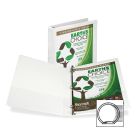 Eco-friendly view binder features removable rings that make the binder 100 percent recyclable. Sturdy chipboard core is made from recycled material, and the acid-free, PVC-free polypropylene is environmentally safe. A portion of the proceeds from each binder purchased is donated to American Forests to help plant a minimum of 7,500 trees annually. Clear overlays on front, back, and spine allow easy customization. Locking metal round rings are mounted on the back cover to reduce wear and let letter-size pages lie flat. 3 capacity holds approximately 575 sheets. Two, clear inside pockets store additional loose papers. Design also includes exposed rivets."