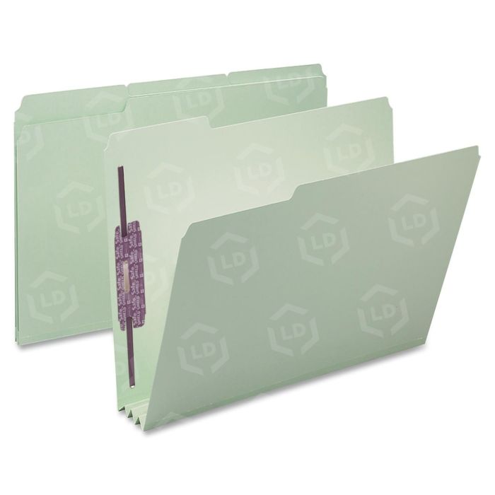 File folders are made for large, bulky files that get plenty of use. Ideal for project files, real estate transactions, loans, legal files or anytime you need to keep large amounts of paperwork in sequential order for frequent reference. Matching-color Tyvek tape and heavy accordion pleat allow expansion. 1/2" high tabs are 1/3 cut in assorted positions. Folders offer 2" prong K-style fasteners. 25 point gray/green pressboard stock is made with a high percentage of recycled material.
