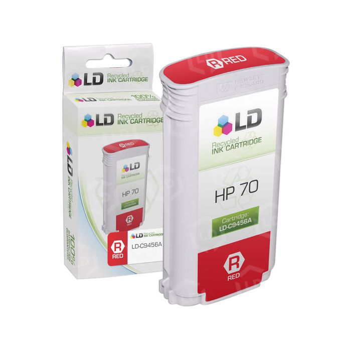 The high-quality LD remanufactured C9456A (HP 70) red inkjet cartridge is an OEM HP C9456A cartridge that has been professionally remanufactured using both OEM and non-OEM parts. This remanufactured LD cartridge for HP 70 comes equipped with a fresh supply of pigment based ink for optimum performance and longevity and an ink indicator chip that accurately tracks your ink levels and communicates with your printer to be sure you are receiving the best quality print possible. Our Lifetime Guarantee ensures that you will get excellent printouts when you buy our remanufactured C9456A. LD remanufactured ink cartridges are not remanufactured by HP.